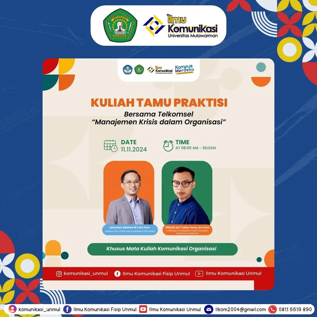 Program Studi Ilmu Komunikasi Unmul menyelenggarakan kuliah tamu praktisi dalam mata kuliah komunikasi organisasi yang bekerjasama dengan telkomsel bertema "Manajemen Krisis Dalam Organisasi"