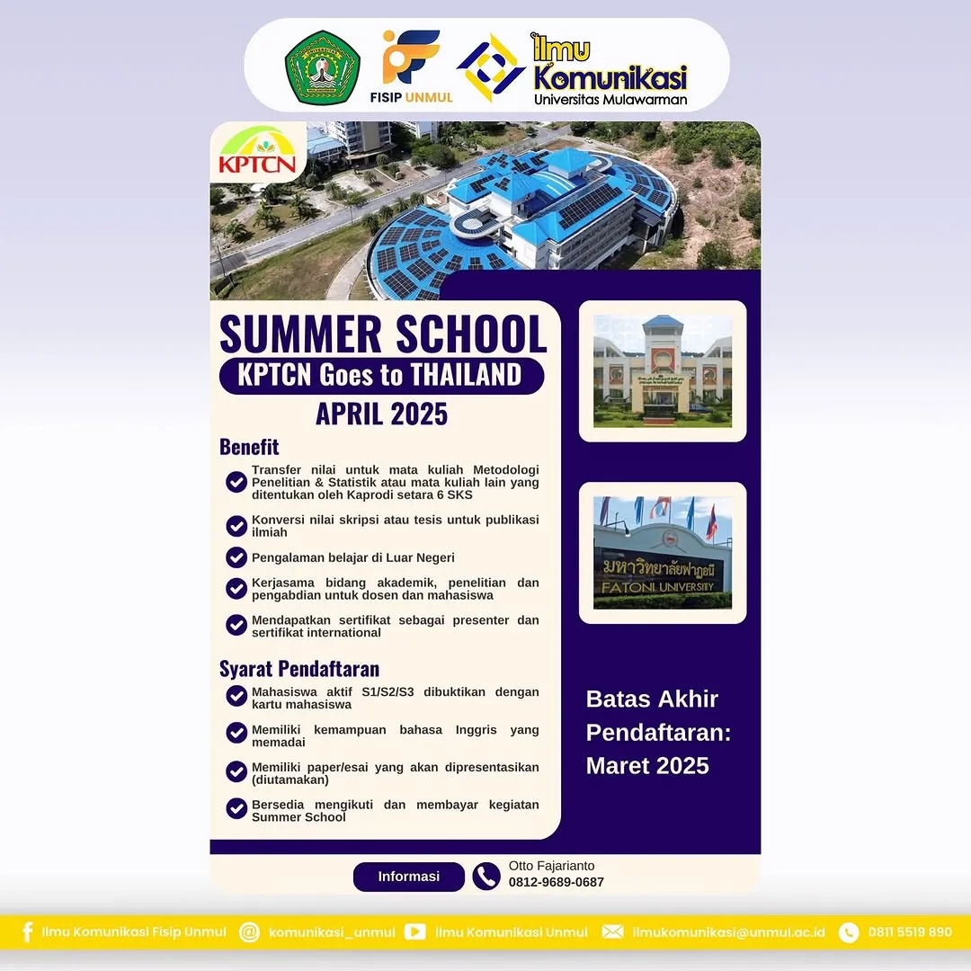 Program Studi Ilmu Universitas Mulawarman bekerja sama dengan Komunitas Pengembangan Teknologi dan Cendekiawan Nusantara (KPTCN) dalam menyelenggarakan program Summer School bertajuk "KPTCN Goes To England". Program ini bertujuan untuk meningkatkan wawasan akademik dan pengalaman internasional bagi mahasiswa yang terpilih.